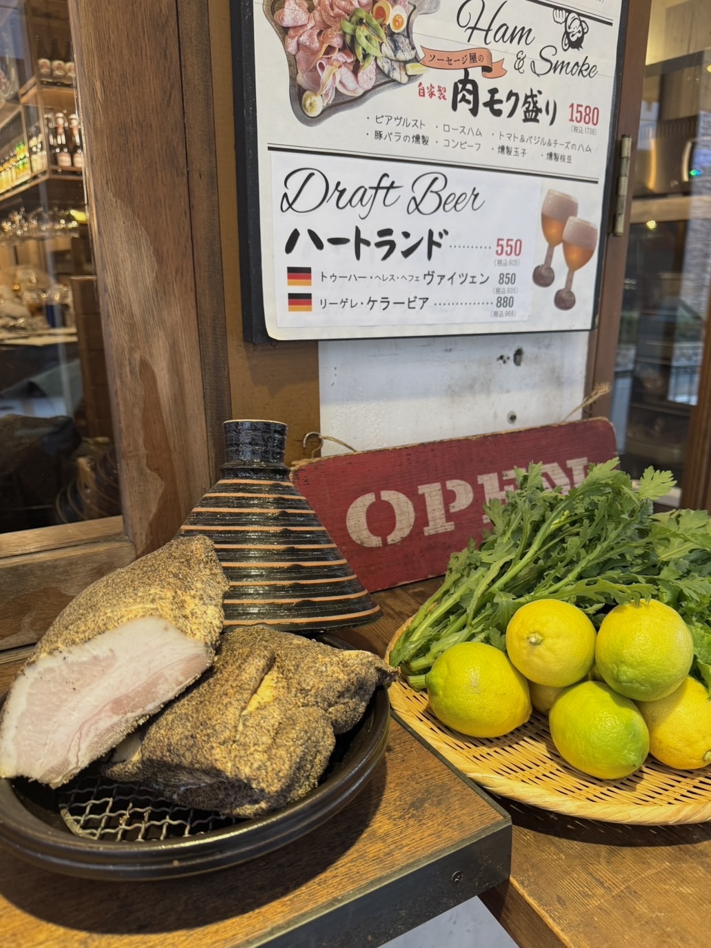 春菊とわさび菜の豚燻サラダ