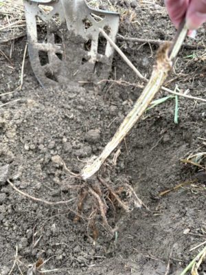 つるが 根っこが 長くて深くて 一苦労…