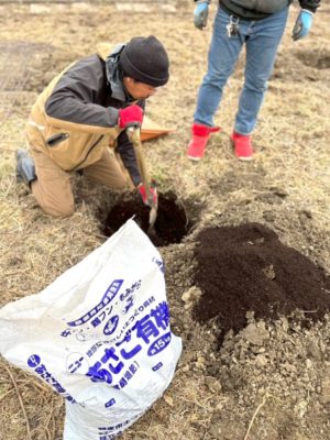 発酵堆肥を混ぜ込んで